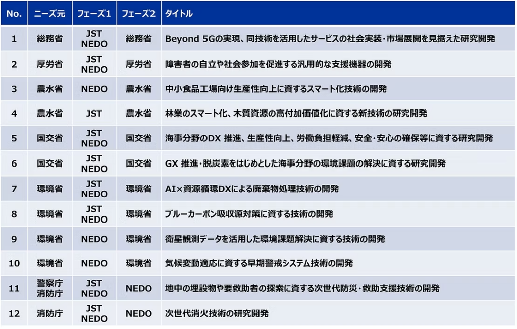 関係府省庁等が実施する研究開発課題や研究開発フェーズは、年度毎に内閣府ガバニングボードにより決定されます。令和8年度の連結型のトピックが以下の通り決定されました。