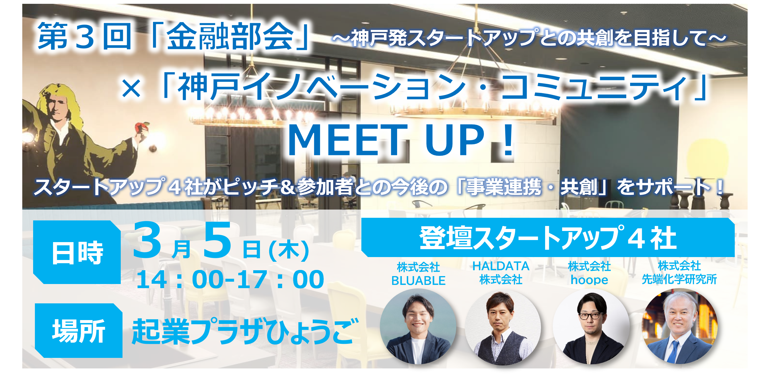 EVENT イベント(Meetup) TOP > イベント > Meetup すべて セミナー 座談会 Meetup Pitch 会員限定 メンタリング ワークショップ 開催日の昇順開催日の降順 ひょうご新規事業・共創ミートアップ 日時2026/03/02(月曜) 場所hoops link kobe・KiP Meetup 『第3回「金融部会」×「神戸イノベーション・コミュニティ」MEETUP!』~神戸発スタートアップとの共創を目指して~ 日時2026/03/05(木曜) 場所KiP Meetup Pitch HYOGO Visionary Days~スタートアップの挑戦やイノベーションの最前線に触れる3日間~【DAY2】「 ひょうご神戸イチオシSU」 日時2026/03/12(木曜) 場所KiP セミナー Meetup 【兵庫県主催】STARTUP YOUTH FES HYOGO ~スタートアップの挑戦やイノベーションの最前線に触れる3日間~【DAY3】 日時2026/03/14(土曜) 場所KiP Meetup Pitch