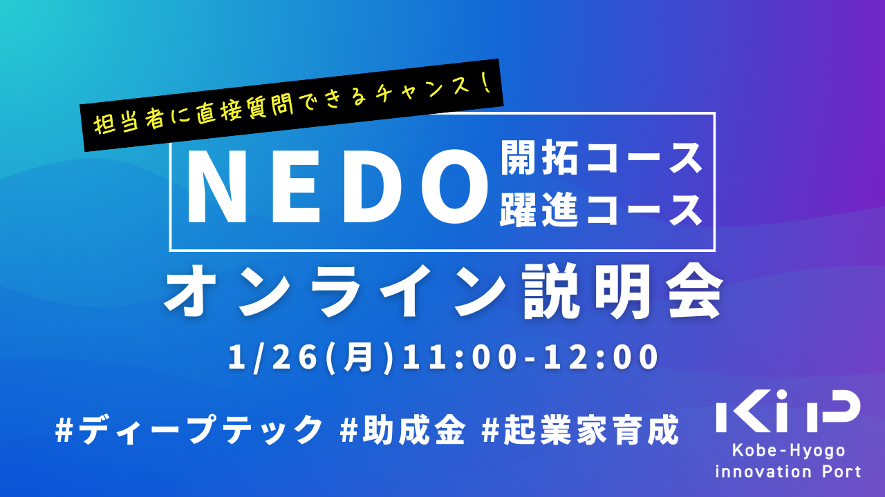 EVENT イベント(セミナー) TOP > イベント > セミナー すべて セミナー 座談会 Meetup Pitch 会員限定 メンタリング ワークショップ 開催日の昇順開催日の降順 ひょうごオープンイノベーションチャレンジ2025 #8 ~スポーツテック×オープンイノベーション〜 日時2026/01/14(水曜) 場所KiP セミナー Pitch ディープテック向けの豊富なサポートが特徴のNEDO 助成金オンライン説明会! 日時2026/01/26(月曜) 場所オンライン セミナー